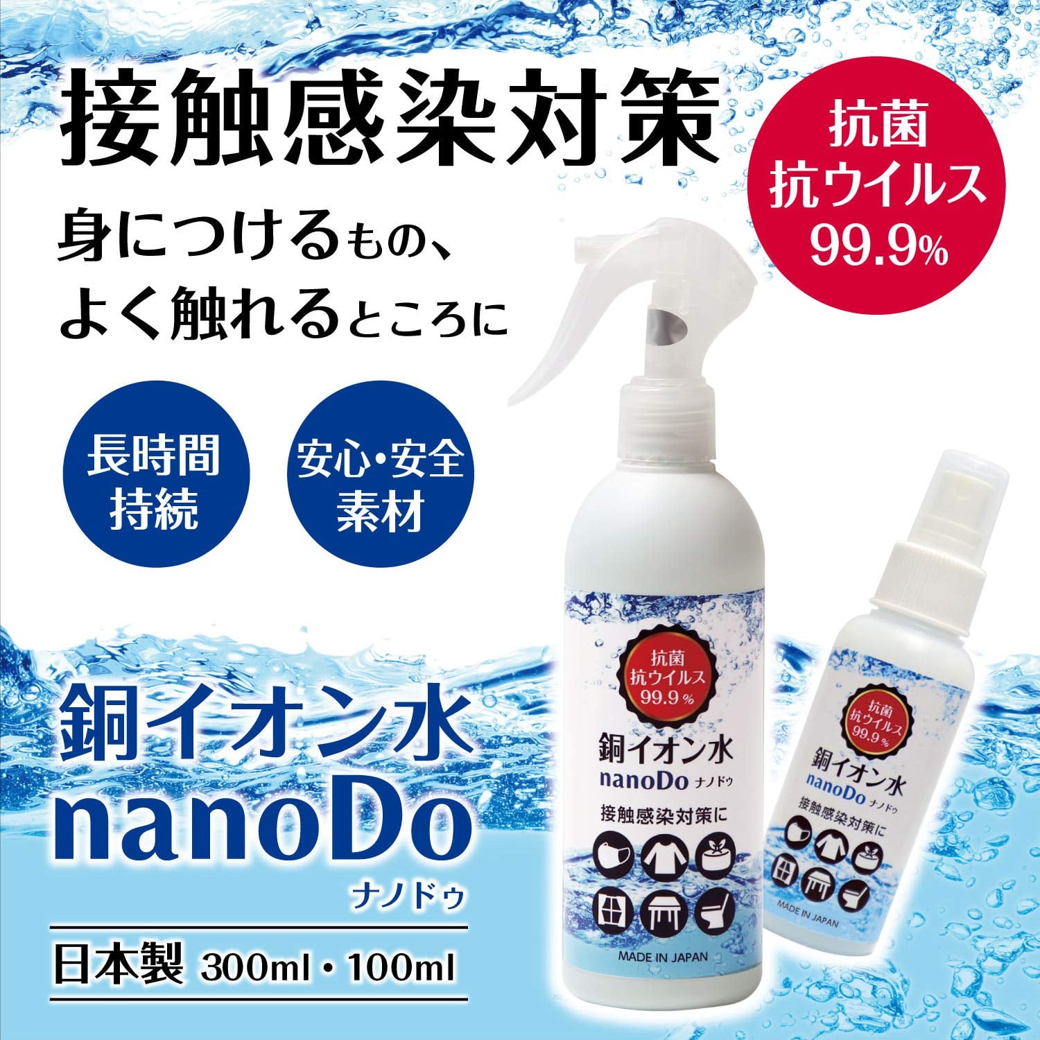抗菌 抗ウイルス スプレー 銅イオン水【nanoDo】 接触感染 対策 長時間持続 携帯 スプレー 加湿器 対応可 日本製 (100ml)