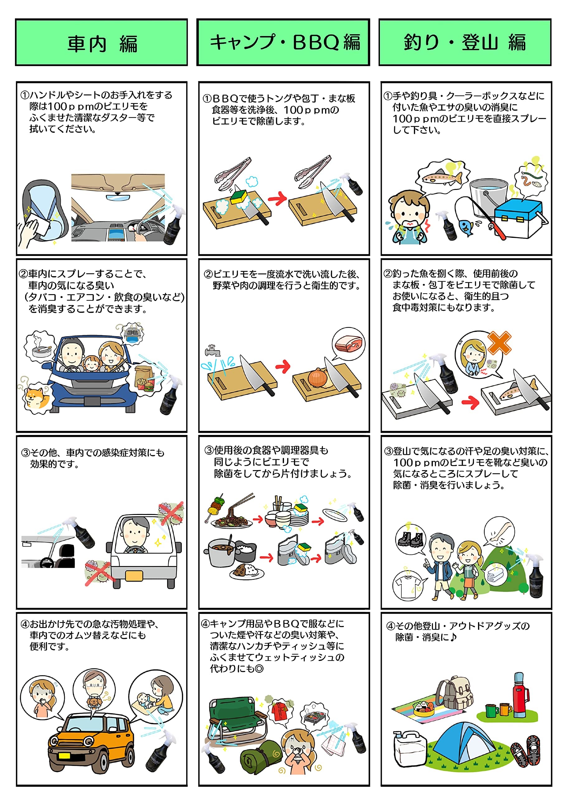 除菌剤ビエリモ黒ボトルスプレーに詰替えてご使用ください。