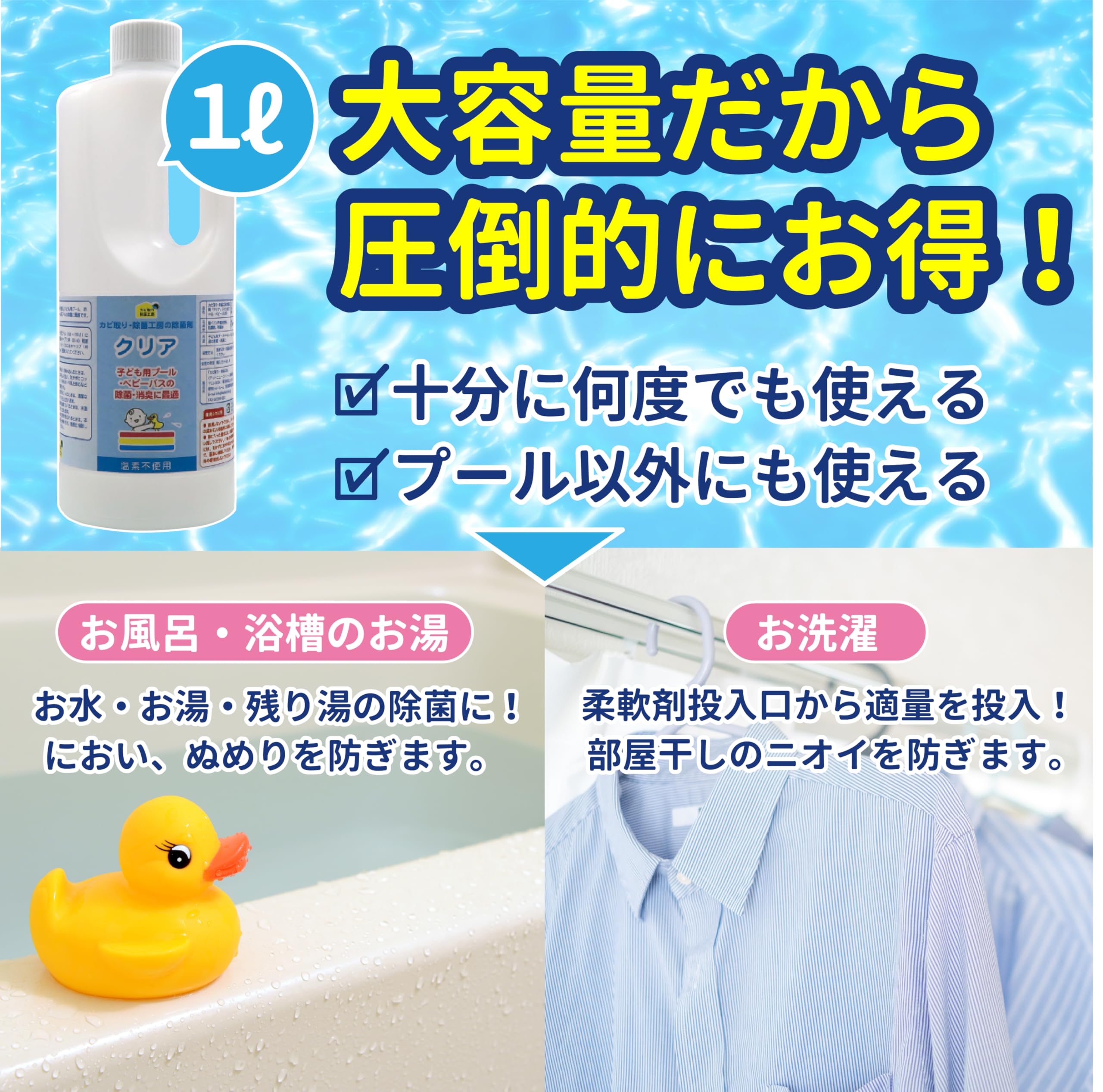 (1?ボトル)除菌剤【クリア】子ども用プール・ベビーバス用(1?) 塩素不使用 お子様のために使う水回りの除菌消臭(ご家庭・施設兼用新ラベル)