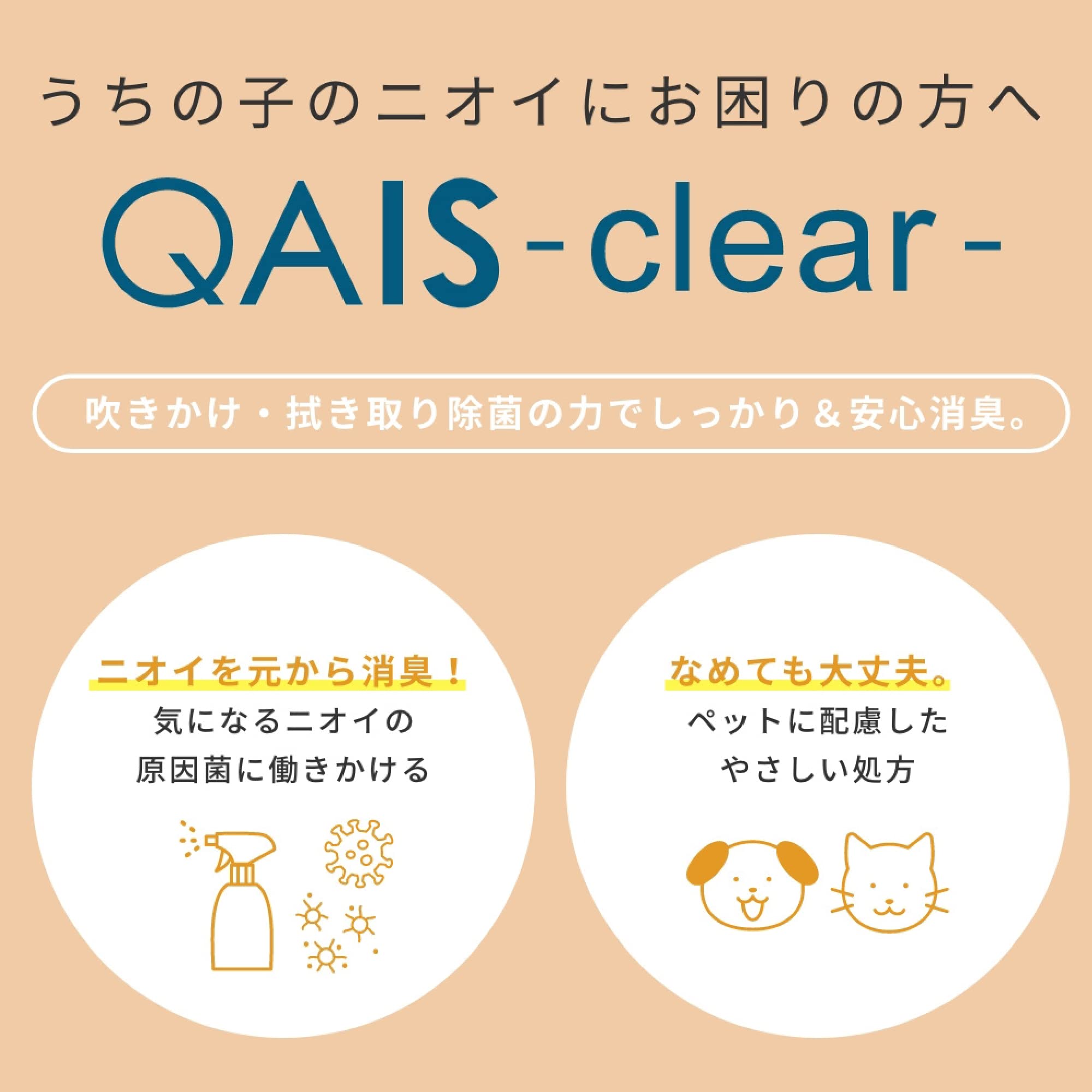 QAIS-clear-は、ニオイの原因菌に働きかける除菌消臭スプレーです。