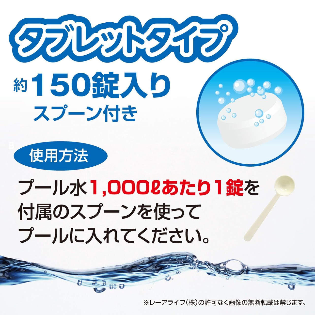 レーアライフ ジアラスター プール 大型 150錠 タブレット 1000Lに1個入れるだけ 計量スプーン付 子供用 家庭用 塩素剤 安心の日本製 (プール大型用 150錠)