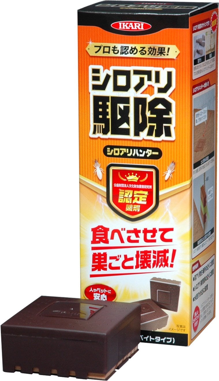 シロアリの生態・習性を利用し、薬剤を散布せずに巣ごと駆除する、新しいタイプのシロアリ駆除剤。