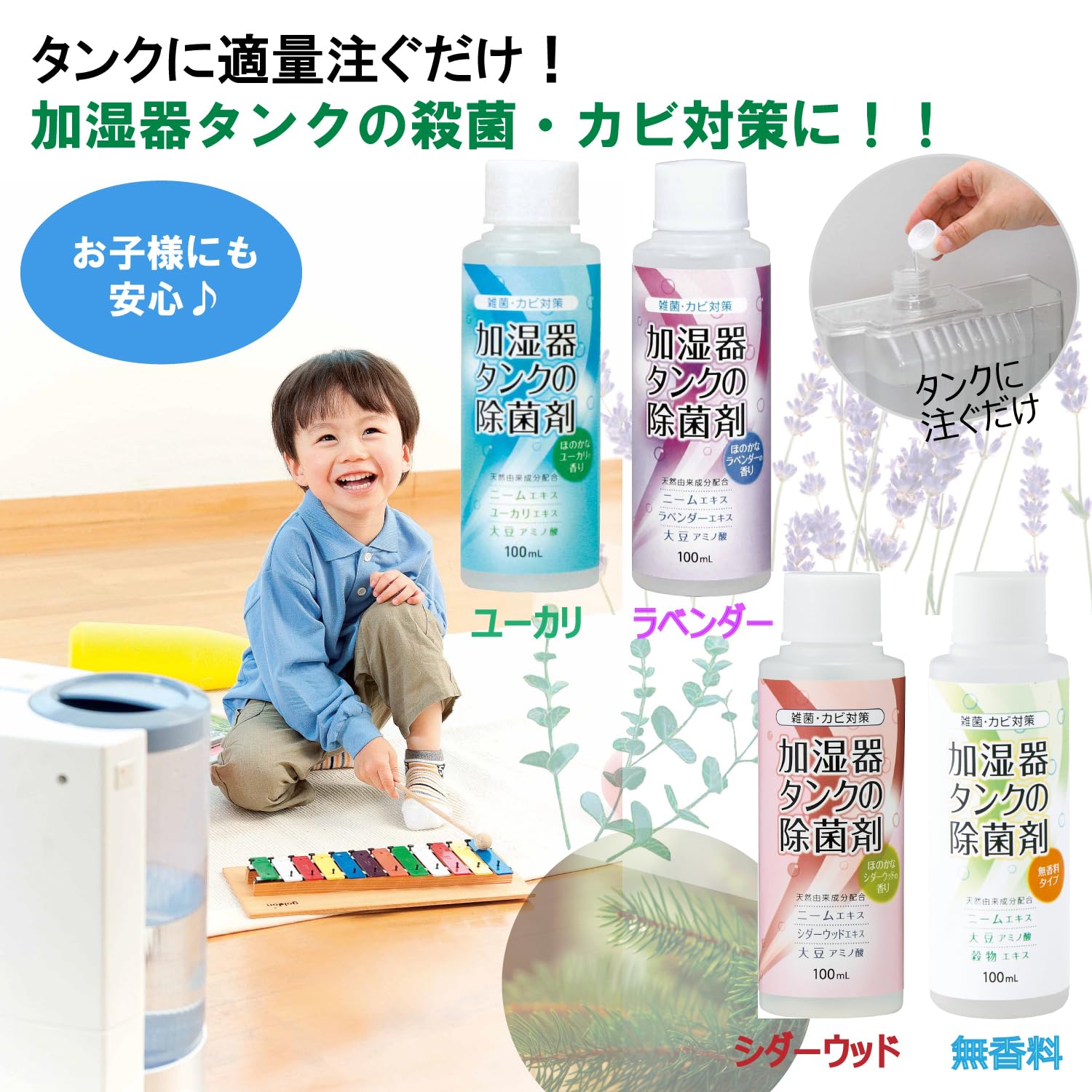 天然成分でカビや雑菌を除去、匂いが嫌な人でも安心の無香料。