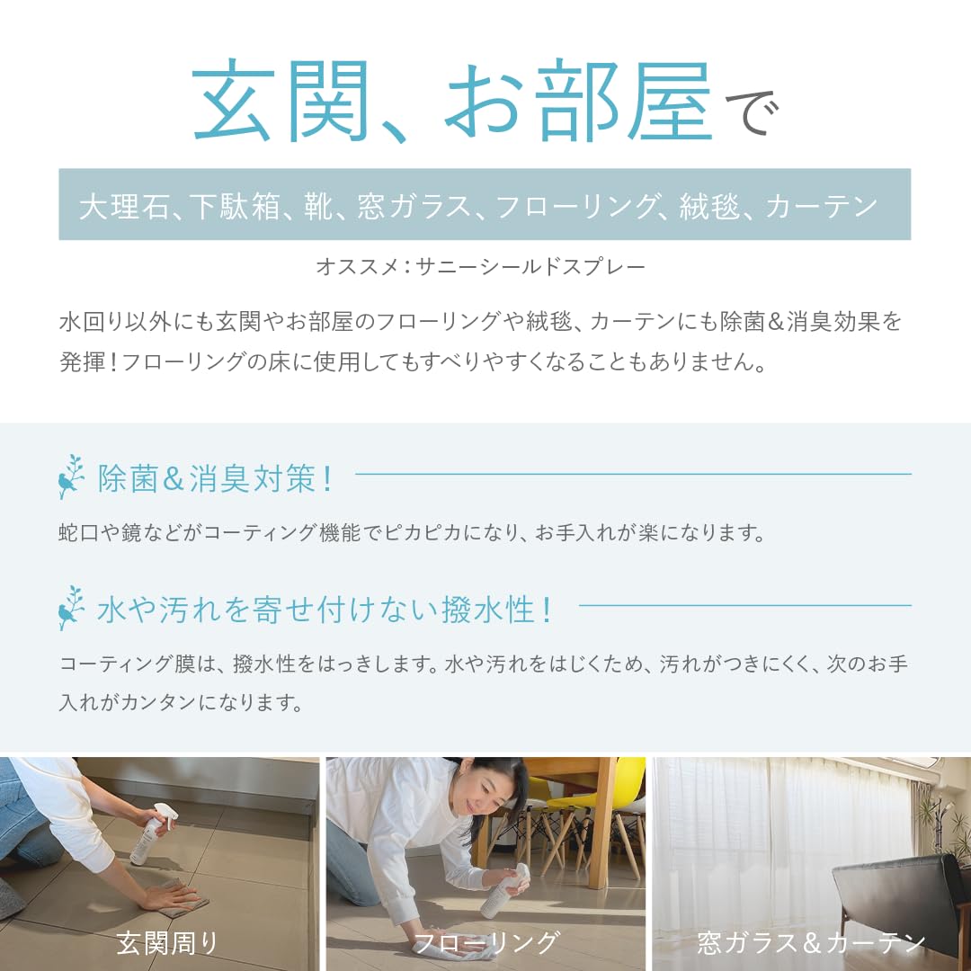 【新春セール】SANI-SHIELD サニーシールドAg+ 除菌スプレー クリーナー 中性 抗菌コーティング ウィルス 花粉 消臭 防カビ お掃除 洗浄 撥水 艶 ツヤ 手に優しい 古堅純子 銀イオン ペット臭 日本製 トリガー2本+スクラブ1本 サボン | Lumisfera