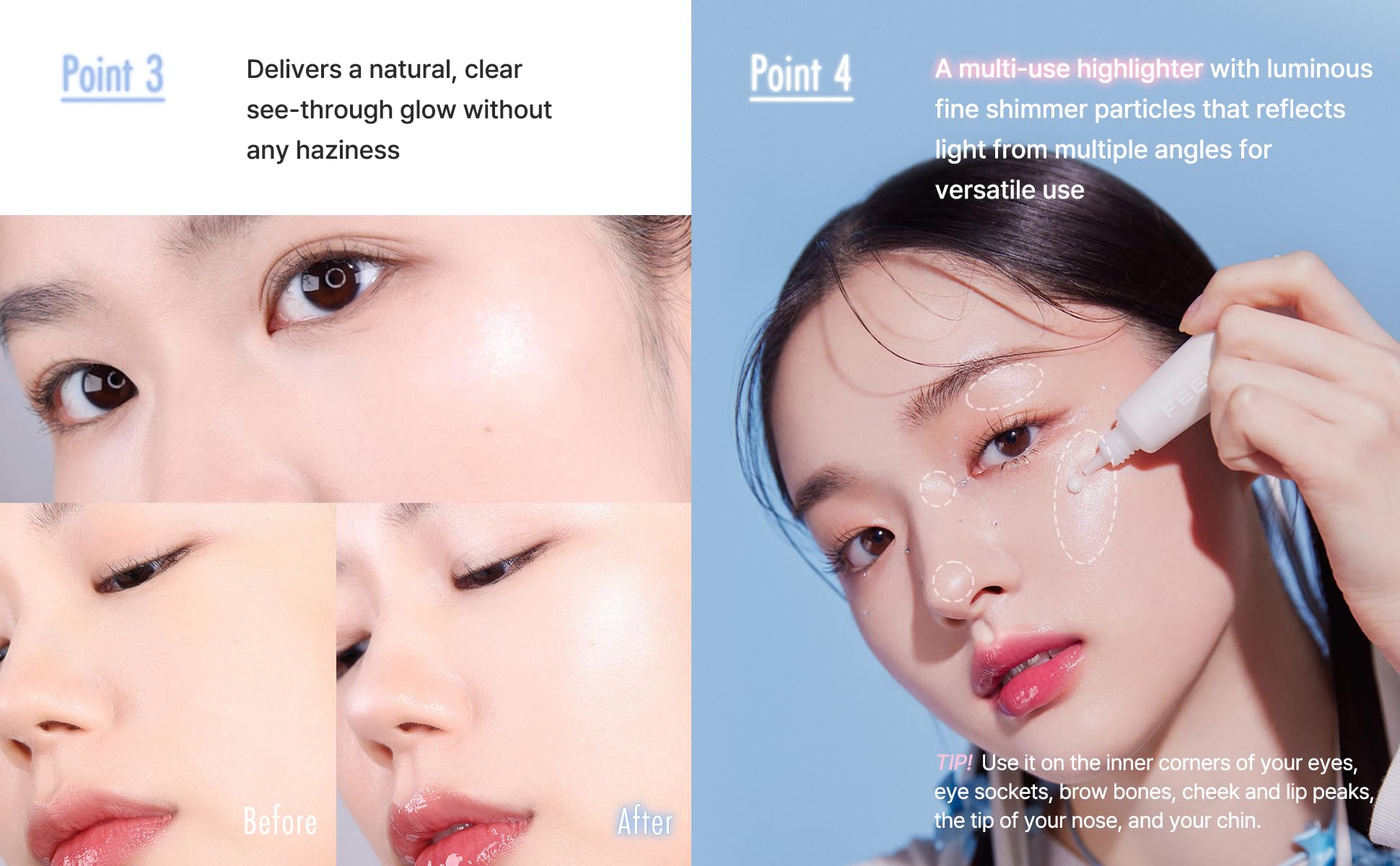 【使い方】顔や体のツヤと立体感を演出したいところに塗ってください。カラーセラムとミックスすると、きらめくチークを演出できます。