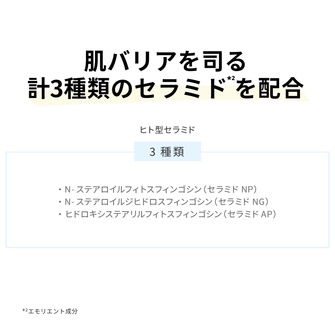 【肌バリアを守る3種類のセラミド*2を配合】 3種類のヒト型セラミド*2を配合し、肌のうるおいをサポートします。