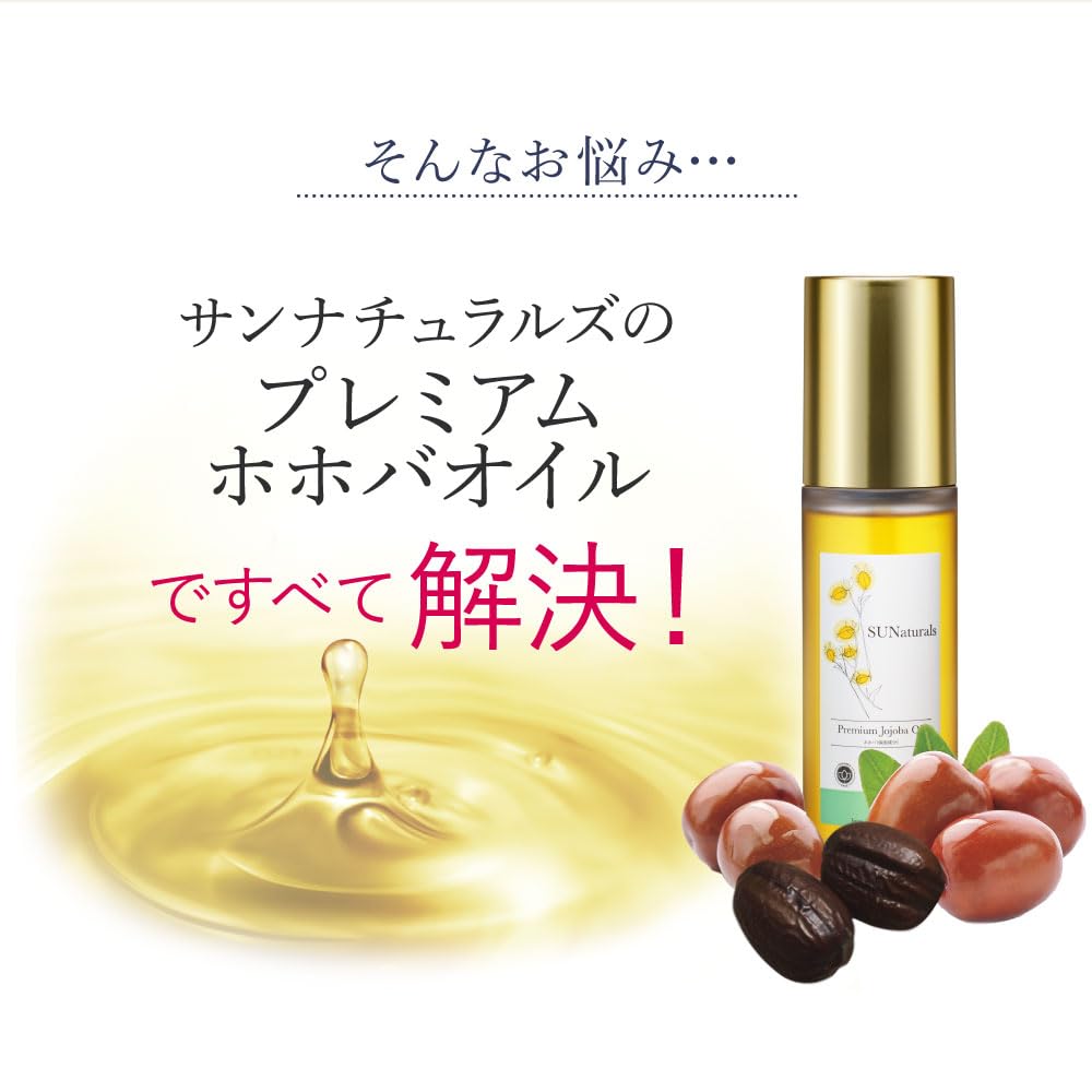 サンナチュラルズ プレミアムホホバオイル(プレミアムピュアジェイオイル)アメリカ産ホホバオイル/オーガニック/未精製/スキンケアオイル 40ml