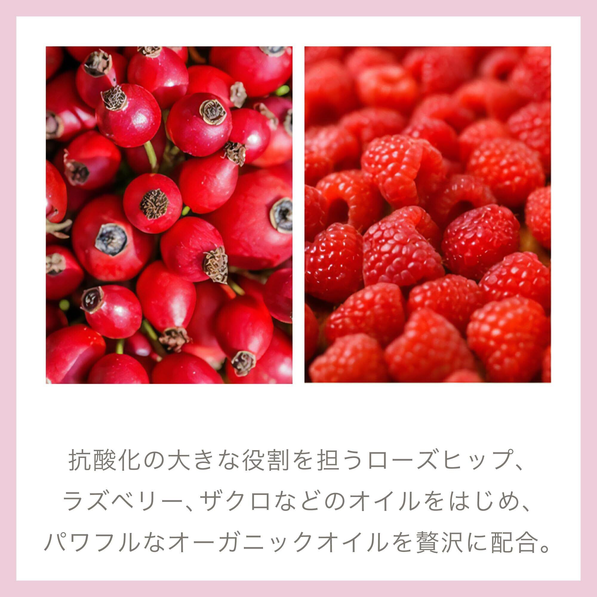 商品特長 ローズヒップオイル、クランベリーオイル、ザクロオイルなどを配合