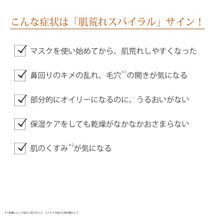 *1 ビタミンC:リン酸アスコルビルMg、パルミチン酸アスコルビルリン酸3Na、テトラヘキシルデカン酸アスコルビル、ビタミンA:パルミチン酸レチノール、ビタミンB3:ナイアシンアミド、ビタミンB1:チアミンHCl、ビタミンB2:リボフラビン、ビタミンB5:パントテン酸Ca、ビタミンB6:ピリドキシンHCl、ビタミンB12:シアノコバラミン、ビタミンE:トコフェロール(整肌成分) *2 整肌成分 *3 整肌成分 *4 ドクターケイで初めて *5 花粉や乾燥など外的ストレスによる *6 乾燥によって目立つ毛穴のこと *7 キメの乱れた肌印象のこと *8 スクワラン、ホホバ種子油、ヘマトコッカスプルビアリス油(保湿成分)