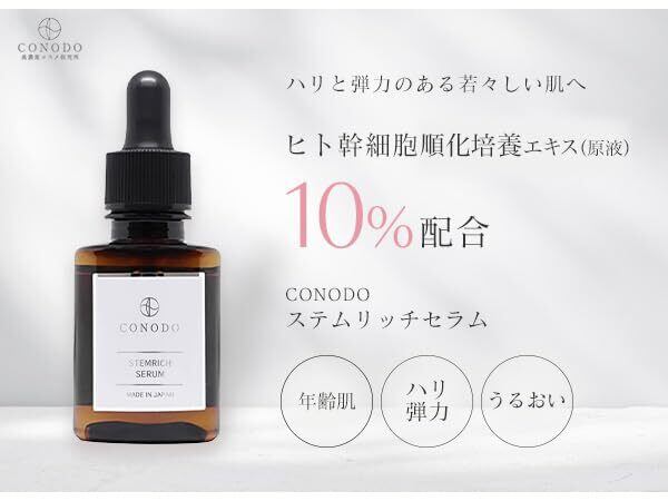 【ヒト幹細胞順化培養液エキス原液10%配合】CONODO (コノド) ステムリッチセラム 30ml 美容液 リポソーム ヒト幹細胞 プロテオグリカン コラーゲン ヒアルロン酸 CICA配合 高濃度 国産 低刺激