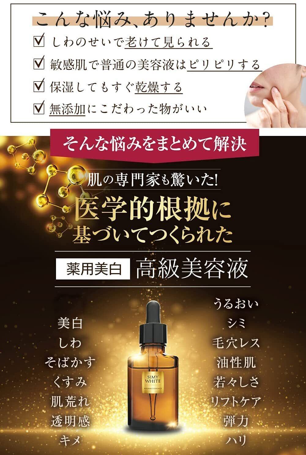 シミーホワイト 美容液 薬用 ホワイトリンクルエッセンス シワ シミ そばかす 改善 美白 保湿 無添加 コラーゲン ヒアルロン酸 配合 エイジングケア 敏感肌 乾燥肌 肌荒れ 化粧水 の前に メンズ レディース 兼用可 18ml