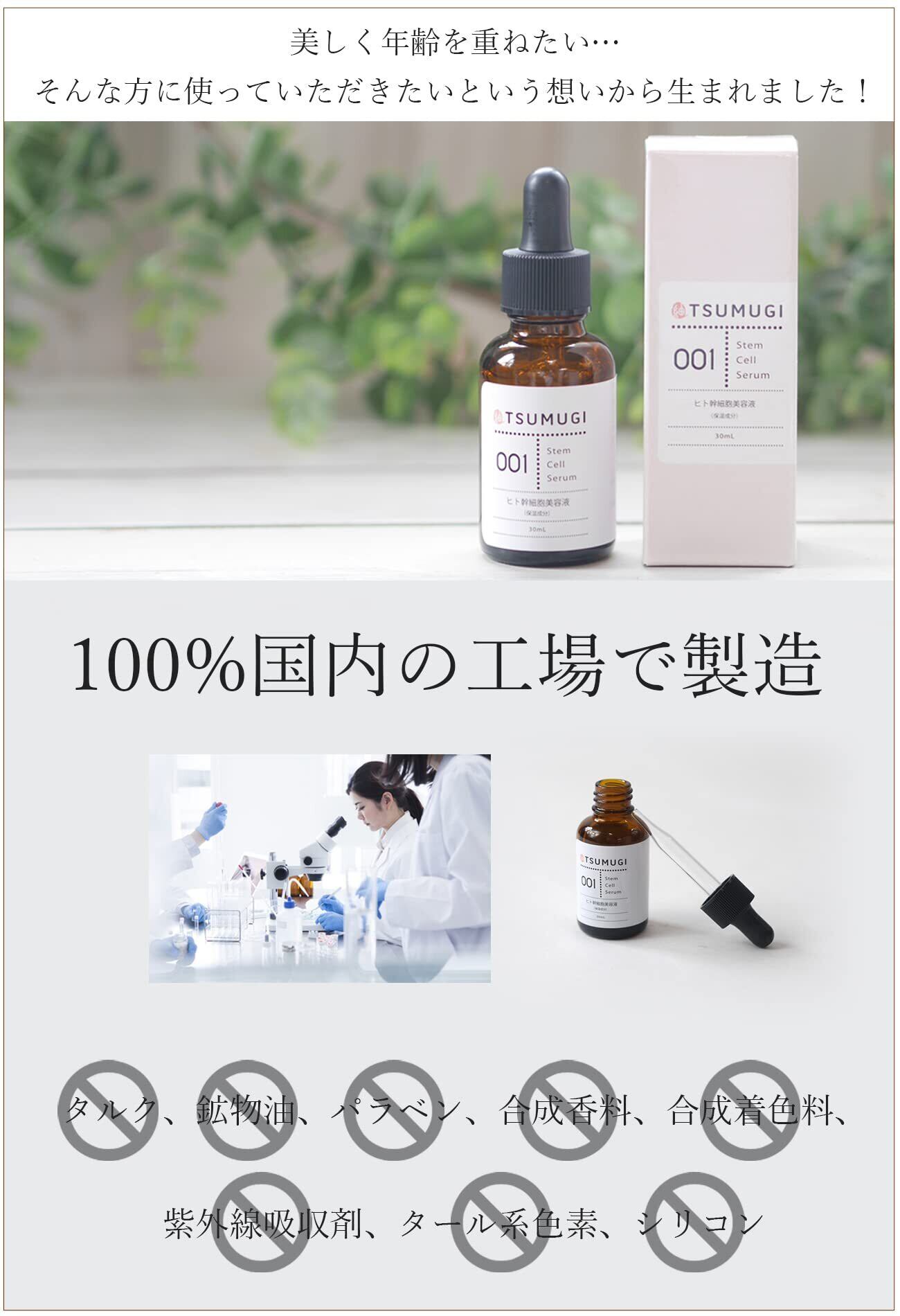 つむぎ ヒト幹細胞 美容液 ヒト幹細胞 原液5%配合 30ml 国内生産/無添加 つむぎコスメ
