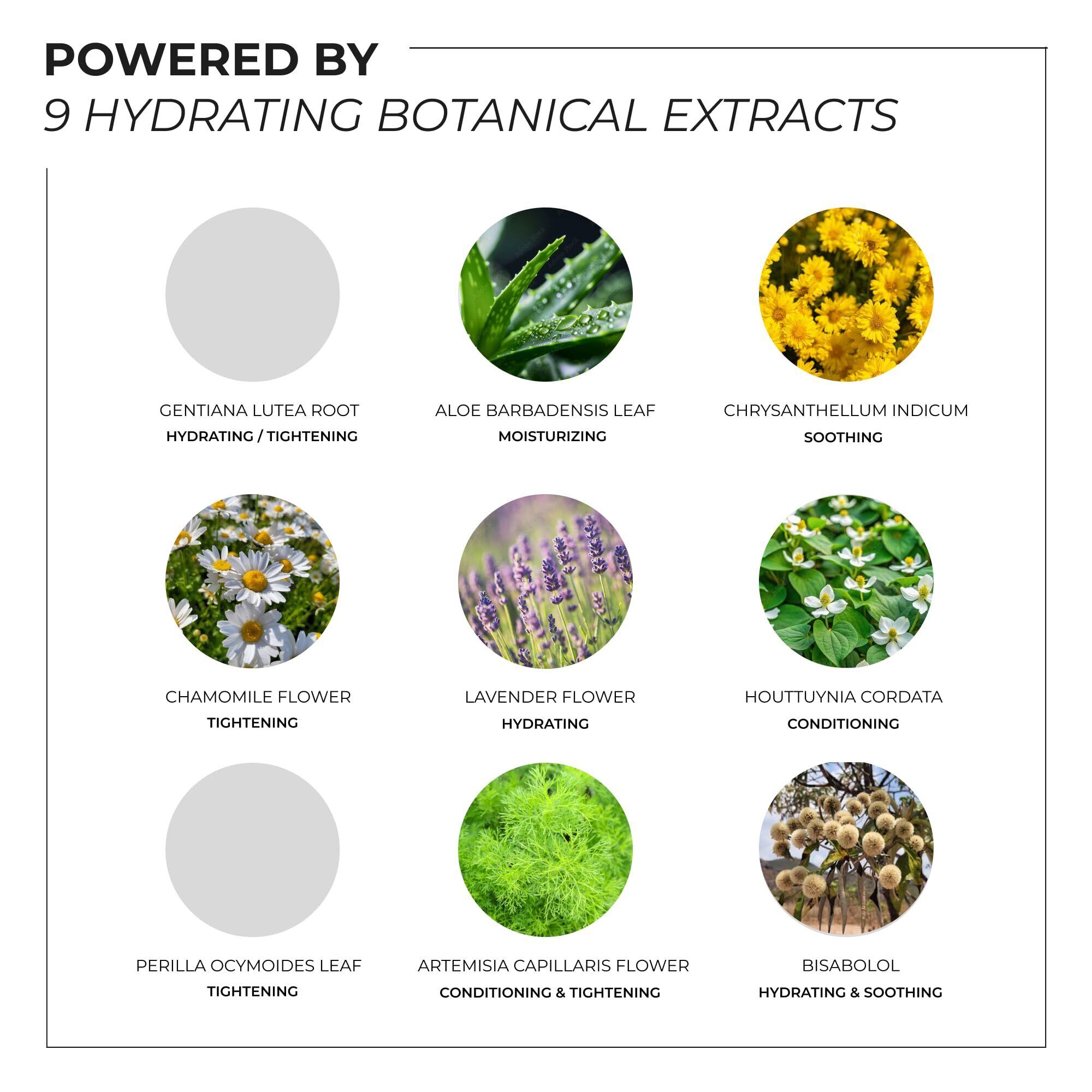 全成分:水、BG、グリセリン、グリコシルトレハロース、ペンチレングリコール、加水分解水添デンプン、カルボマー、グリチルリチン酸2K、アボカド油、スクワラン、ソルビトール、マルチトール、ヒアルロン酸Na、アラントイン、ビサボロール、ゲンチアナ根エキス、アロエベラ葉エキス、クリサンテルムインジクムエキス、カミツレ花エキス、ラベンダー花エキス、ドクダミエキス、シソ葉エキス、カワラヨモギ花エキス、トコフェリルリン酸Na、ポリソルベート80、水添レシチン、水酸化K、クエン酸、クエン酸Na、1,2-ヘキサンジオール