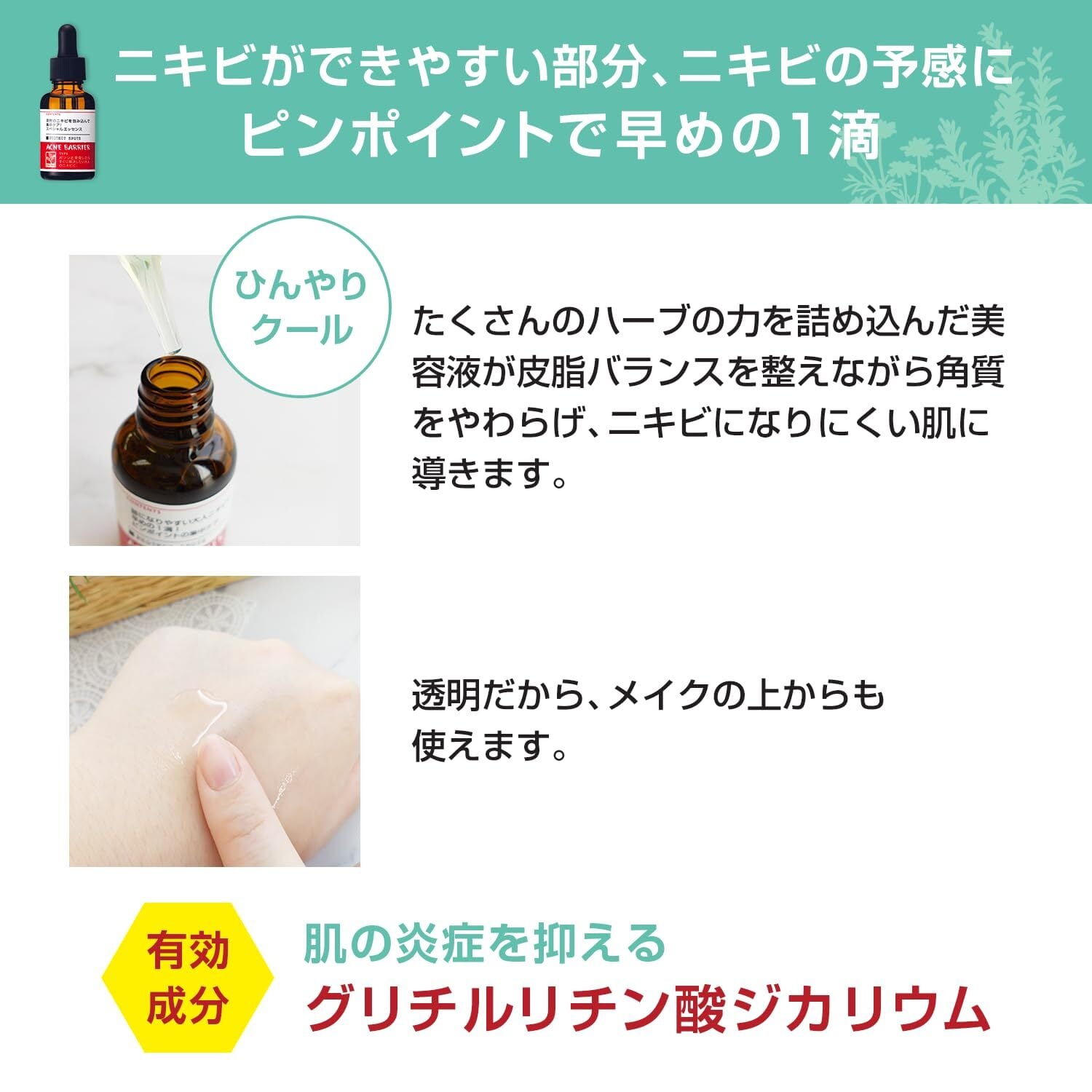 ニキビの予感に早めの1滴!濃縮ハーブの集中ケア美容液