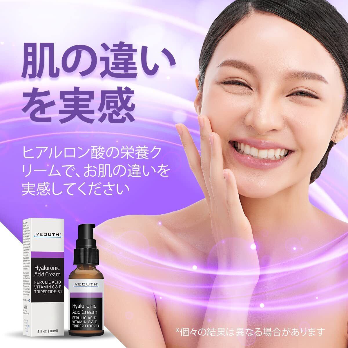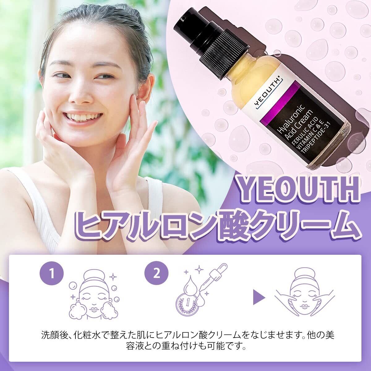 YEOUTH ヒアルロン酸 保湿クリーム 顔 ビタミンC、ビタミンE、フェルラ酸、シアバター、トリペプチド31を豊富に配合した、お肌を引き締めます!プレミアムアドバンスドフォーミュラは、素晴らしいフェイスクリームに仕上げます!パワーアップしたYEOUTH スキンケアクリーム!