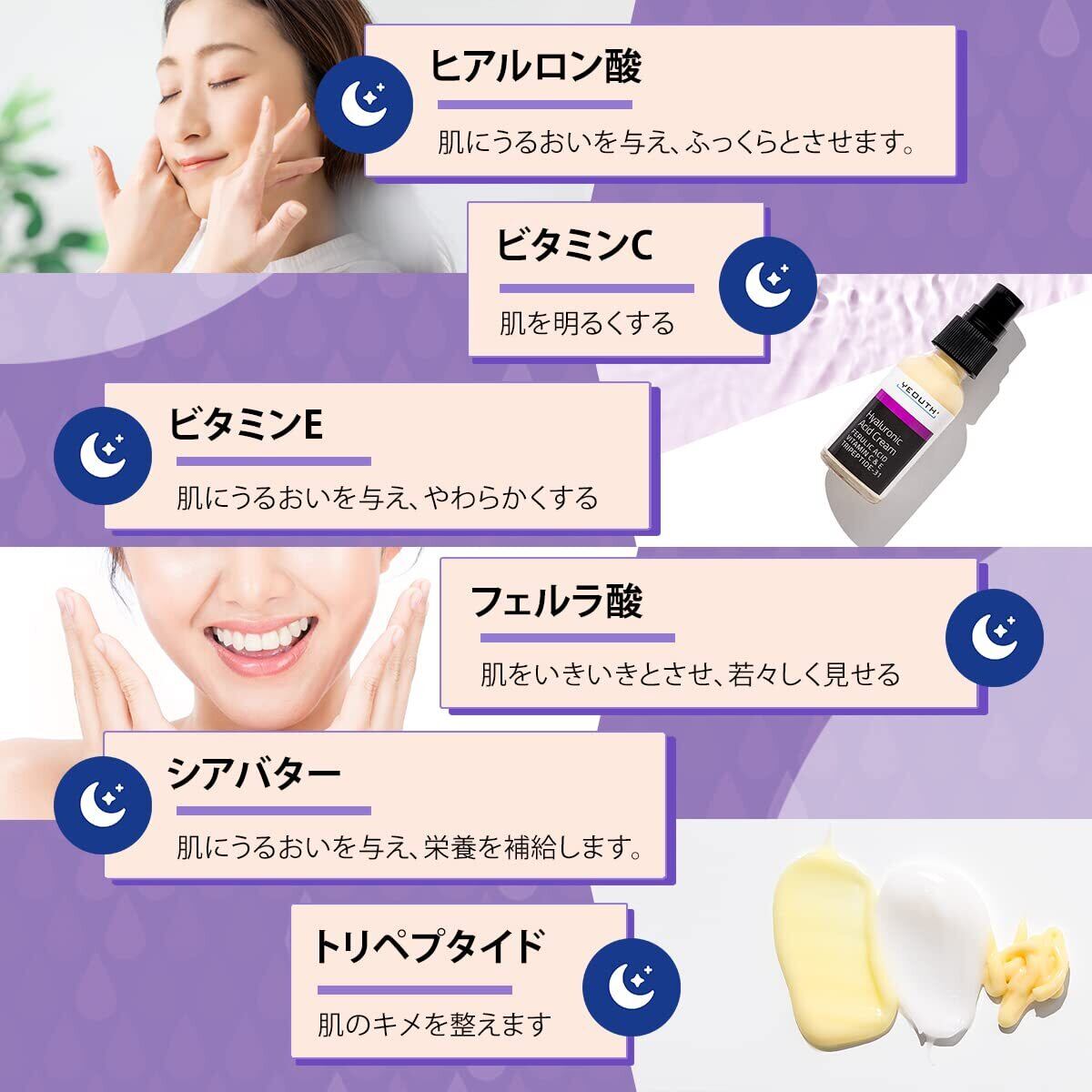YEOUTH ヒアルロン酸 保湿フェイスクリーム ビタミンC、ヒアルロン酸 Night Cream、保湿クリーム、乾燥肌 Moisturizer クリーム、オールインワン顔クリーム、敏感肌用クリーム その他すべての肌タイプ