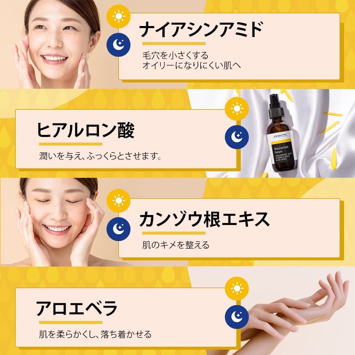 YEOUTH 顔用ナイアシンアミド美容液 ヒアルロン酸 とアロエベラ 配合 60ml(2oz)。Niacinamide Serum、すべての肌タイプ、 美容液 人気ランキング メンズ とレディース