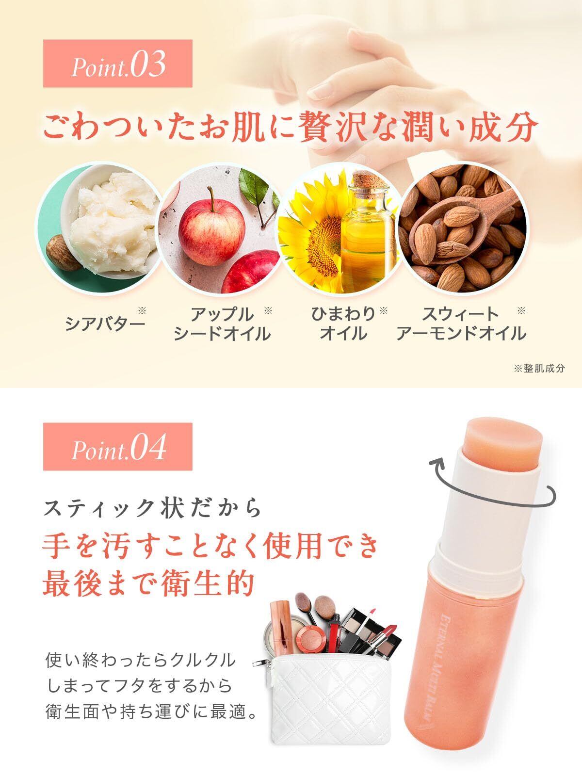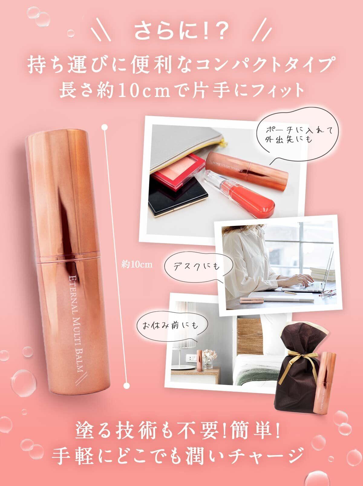【今話題の携帯出来る美容液】スティック状の美容液なので外出先でも使用可能エターナルマルチバームは、目元 口元 首 潤い ハリ 乾燥 などの気になる部分へさっと使用できるマルチバーム。韓国で製造をしている本格 韓国コスメ です