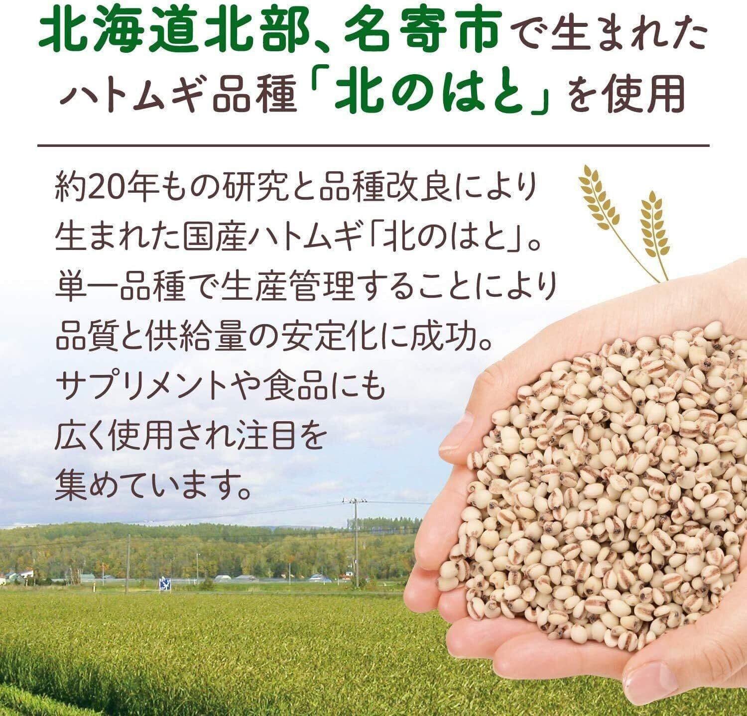 【注目の国産はとむぎ】国産ハトムギ『北のはと』は、北海道でのみ栽培されるブランドはとむぎです。細心の注意を払い単一品種で栽培することで、安定した高い品質を維持しています。
