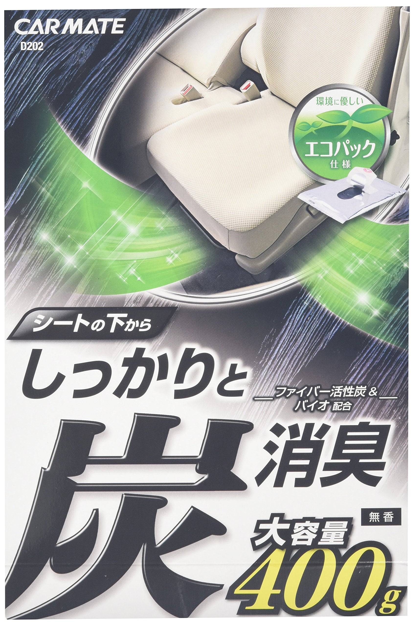 カーメイト(CARMATE) 車用 消臭剤 しっかりと消臭 炭 置き型 シート下 無香 400g D202