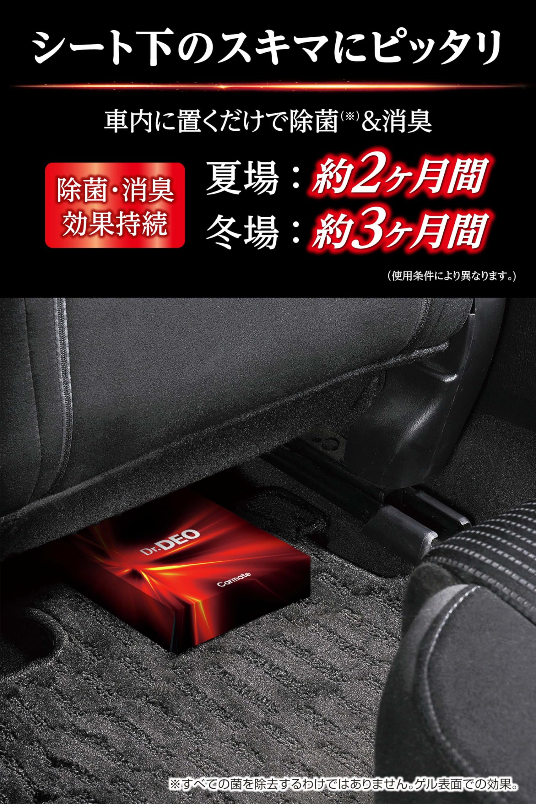 ◆ベーシックタイプ比較200%の消臭性能を実現。 目立たず使えるシート下タイプ 消臭剤