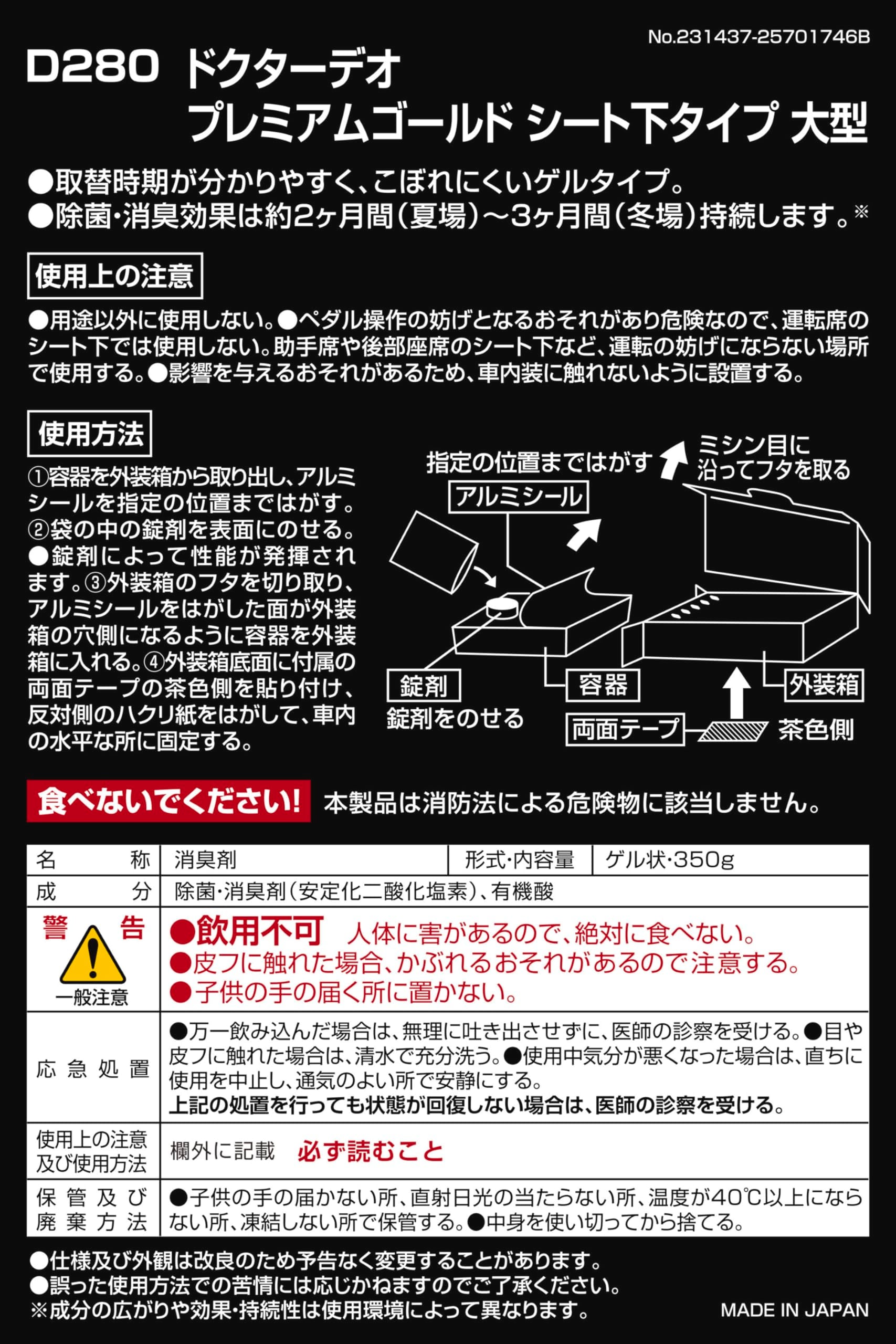 カーメイト(CARMATE) 車用 【 もっと強く! 消臭性能400% 】 除菌消臭剤 ドクターデオ Dr.DEO プレミアム ゴールド シート下設置タイプ 無香 安定化二酸化塩素 大容量 350g D280