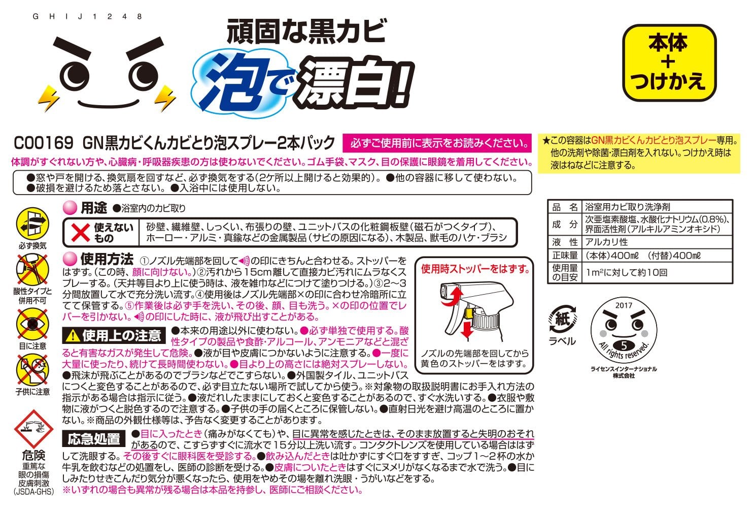 レック(LEC) 激落ちくん 激落ち 黒カビくん 浴室用 強力 カビとり 漂白 泡スプレー (2本パック) 400ml×2本