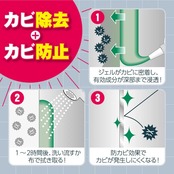 ●ジェルだから、液だれせずしっかり密着。1〜2時間放置するだけで、ジェルの塩素が深部まで浸透してカビを根こそぎ除去します。