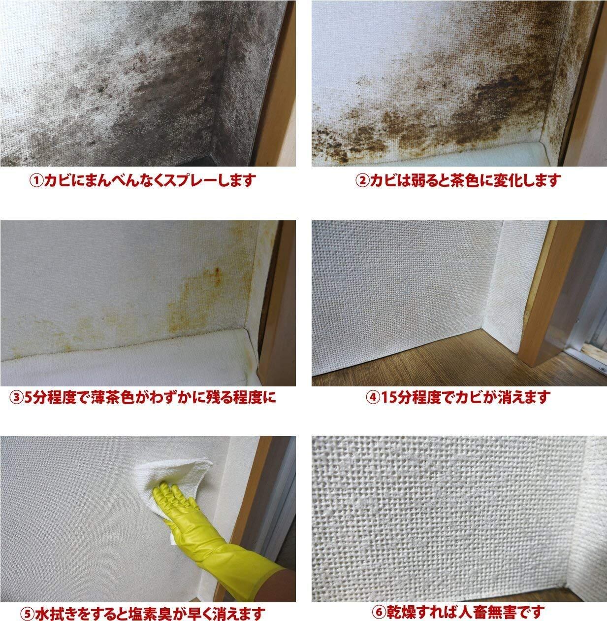おそうじ関連業務30年以上、ネット通販15年以上が開発した本格派のカビ取り剤になります。黒カビ 青カビ 赤カビ 緑カビ 白カビを強力除去(衛生微生物研究所調べ)。目に見えないカビの菌糸や薬品に耐性を持った塩素耐性菌まで除去するため、次のカビが生えづらく最長3か月程度の防カビが期待できます。