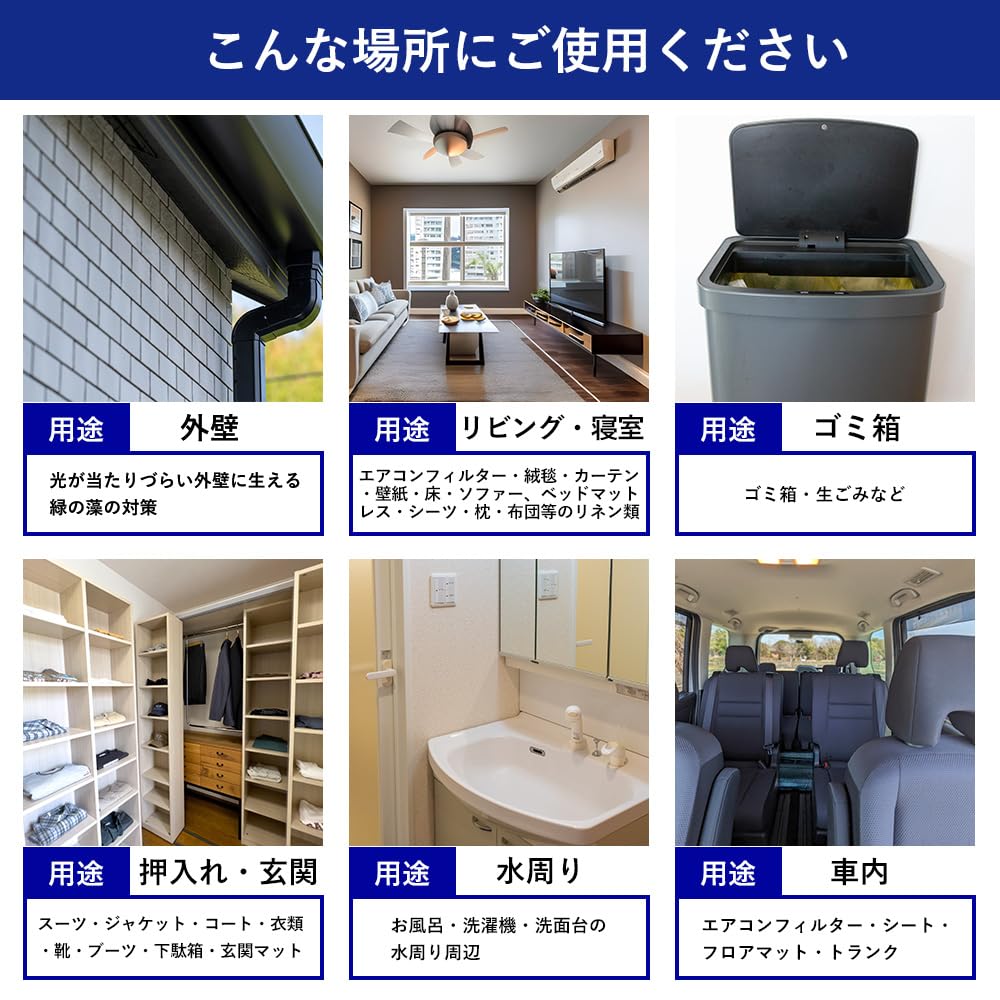 使用方法:本品はカビ取り剤ではありません。既にカビが発生している場合には、綺麗に清掃してからご使用下さい。