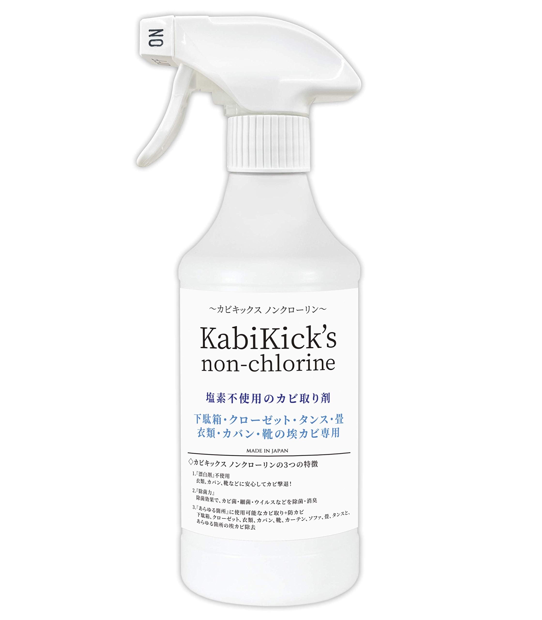 非塩素系のカビキックスノンクローリンは漂白効果がありませんが、細菌・カビ菌を除菌、消臭する成分と、繁殖を抑える防カビ剤を配合しています。さらに3倍まで希釈も可能です。 ①ティッシュで綺麗に取れるカビかを確認する。②まんべんなくスプレーする。③雑巾などで拭く。④乾かす。⑤水拭き不要※念入りにカビ防止する「防カビキックス」を使用する。※水に弱い素材へは使えません。