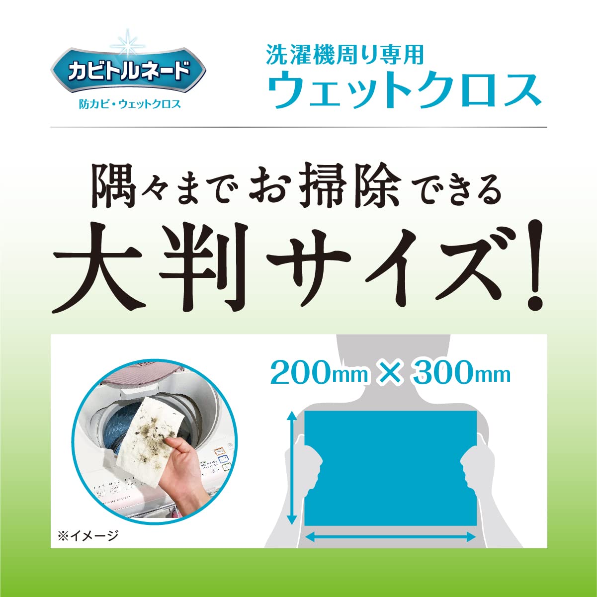 1洗濯機周りの拭き掃除に特化した専用クロス 塩素や界面活性剤不使用! 仕上げの水洗いや二度拭きのいらないウェットクロスだから、水で洗い流すのが難しい洗濯機周りも簡単手軽に掃除を行うことが可能に。掃除後はシートをそのままポイっと捨てるだけでお掃除が完了 2洗浄だけでなく、防カビ・抗菌処理も同時に行える 特許公開中! 国内最多レベル413種類ものカビや菌に効果を発揮する独自の抗菌成分を配合。 カビや菌に栄養を与えず、カビが発生しにくい環境をつくります。なんと最大3ヶ月もカビ菌が発生しないという実験結果も出ているほど。 3フルーツ由来の植物有機酸をたっぷりと配合。 手肌にやさしいのに、汚れをしっかりと分解するフルーツ由来の植物有機酸をたっぷりと配合。 洗濯槽クリーナーでは届かず放置されていた洗濯機の縁や洗濯槽の隙間に発生するカビやホコリはもちろん、洗剤投入口にこびりつく頑固な柔軟剤や洗剤カスも拭くだけでピッカピカ!