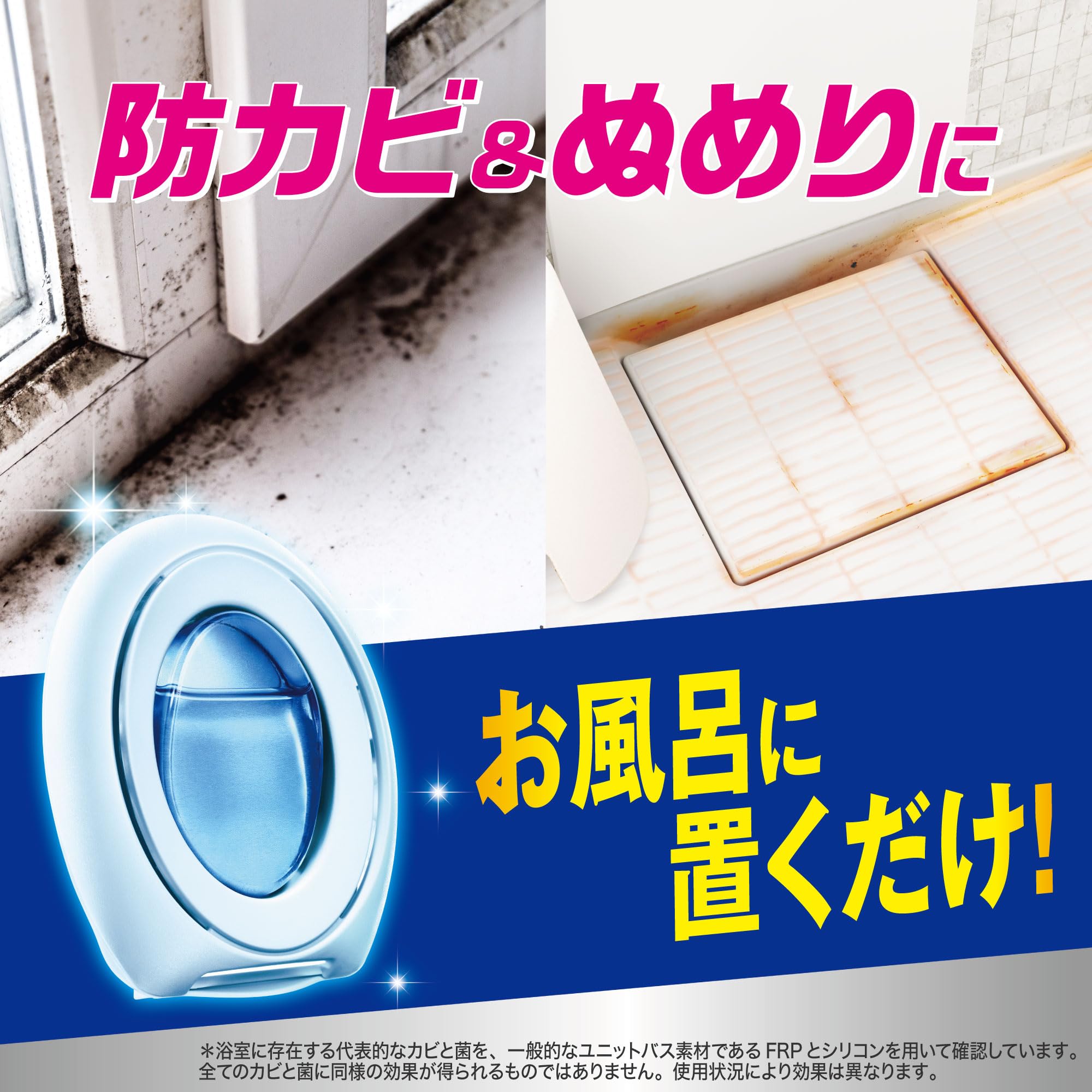 お風呂の天井や床や排水溝など掃除しにくい場所のカビ・ぬめりの成長を24時間ブロック
