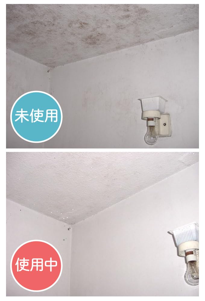 ●人畜無害の善玉微生物が、カビ菌を弱体化 ●タイルや目地に入り込んだカビ菌を食べて退治する善玉微生物》 ●水を入れて浴室に置いて善玉微生物が活動を開始 ●約3週間後、ブラシであらってください。カビが落ちやすくなる ●目地に残ったのはカビの死骸で、ブラシで軽くこすって洗い流せばキレイになる ブラシで軽くこすって洗い流せばキレイになる。 ●もちろん悪臭も防ぐ、これでもうこすり洗いの重労働からさよならできる ●善玉微生物は目に見えず、匂いもないので置いてあったままでも気にならない ●使用場所:浴室・キッチン・洗面台・冷蔵庫・押入れ・トイレ下駄箱・家中のカビ退治にご使用ください。