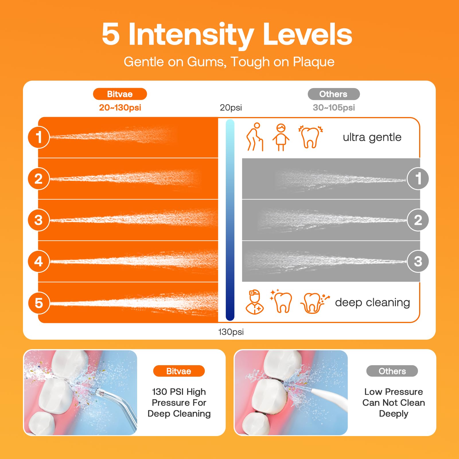 【在庫セール】Bitvae 口腔洗浄器 ジェットウォッシャー 3つのモード&5段階の強度 替えノズル5本 USB充電式 IPX7防水 歯間ケア 家庭用や旅行に最適 PURPLE | Lumisfera