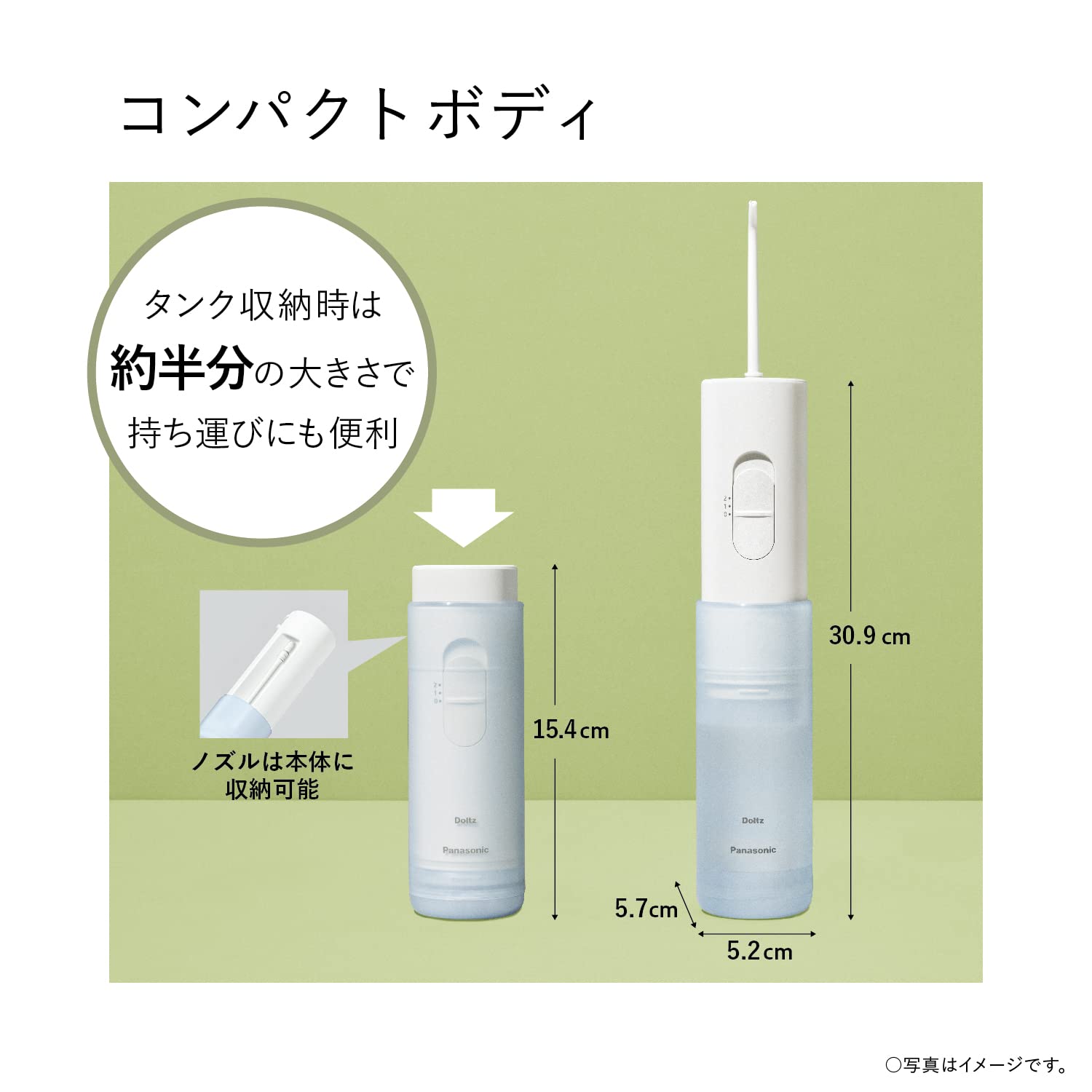 【本体寸法】ノズル装着時:約 高さ30.9×幅5.2×奥行5.7cm
