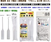☆新品 ●1本のサイズ:長さ14㎝×幅1.95㎝×高さ1.95㎝ ●容量:14ml ●重さ:3グラム ●材質:ポリエチレン(抗菌剤入り) ●生産国:日本製 ●特許登録品 ☆新製品 ●プカシュは手動式の簡易水圧口腔洗浄器です。水流が歯の裏側や歯の隙間などに入り込んで歯周全体の隅々までを手軽に掃除することができます。 ●歯周ポケットや歯間・歯列矯正装置周辺の隙間を水流で掃除します。 ●抜歯窩(抜歯後の穴)に食べかすなどが入ったときのゴミ掃除 ●吹き付けた液を吸引して一緒にゴミを吸い込むことができます。 ●殺菌液を歯周ポケットに注入して奥に生息する歯周菌につけて、歯周病対策ができます。 ☆特徴は、吹き付けた液を吸引して、更に吹付けることができるので、それを繰り返して、水流が狭い隙間まで入り込み、歯周に付いたゴミを満遍なく除去することができます。 ☆夜間など急に歯の激痛があったときに、応急的に対処できます。 ☆歯のメンテナンスに行けない方にも、自宅にいて歯のケアをするのに便利です。
