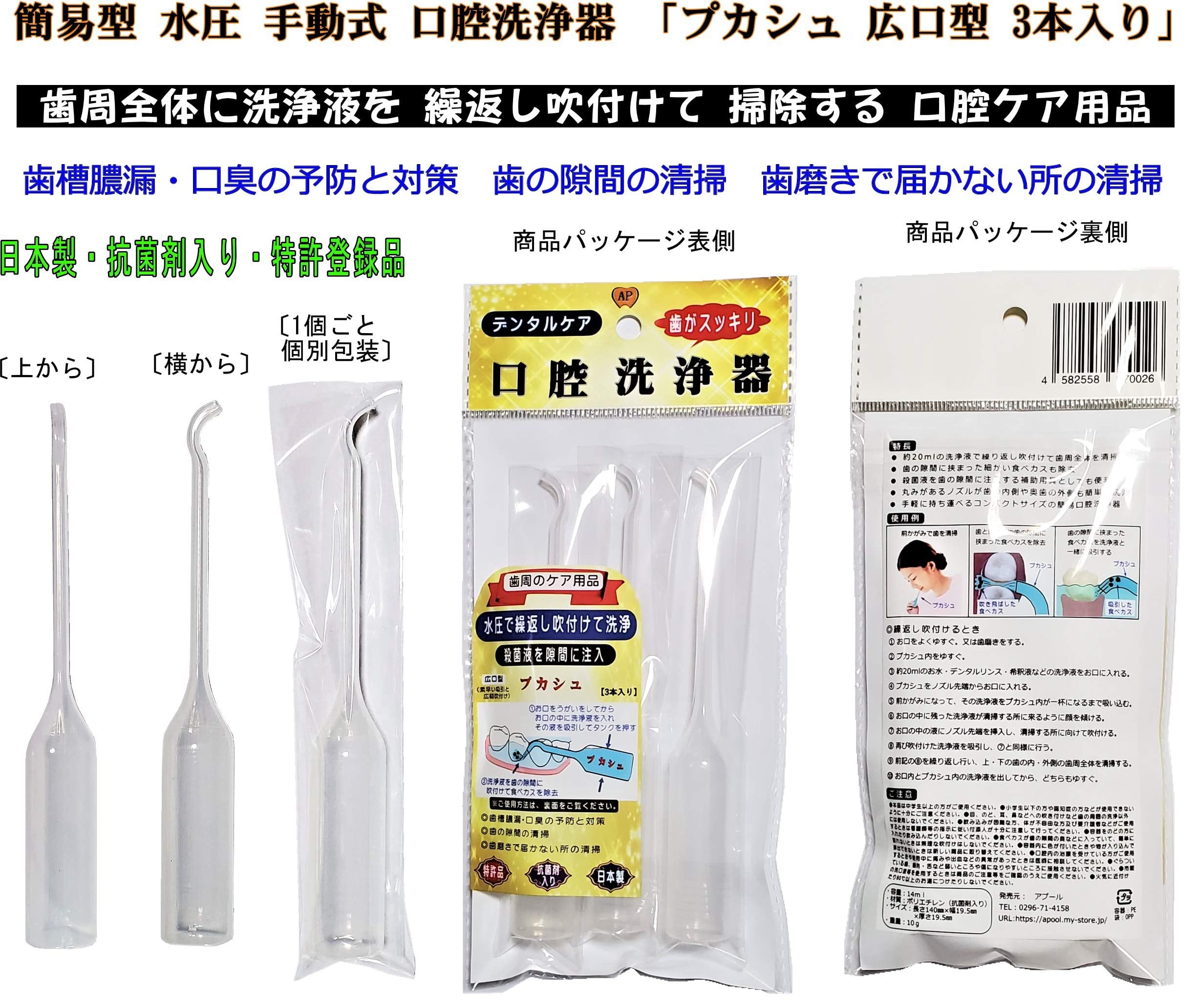 歯周病予防 プカシュ広口型3本 手動式水圧口腔洗浄器・殺菌液注入 歯周ポケット 歯槽膿漏対策用品