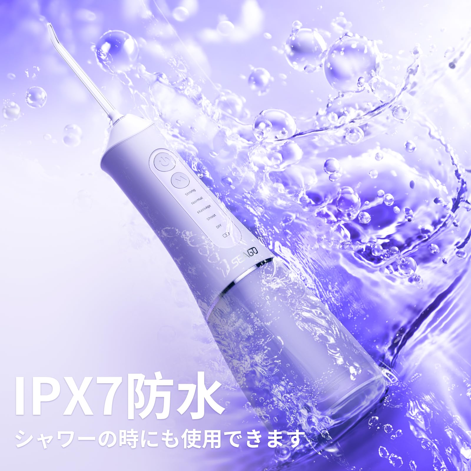 SEAGO 口腔洗浄器 ジェットウォッシャー 替えノズル 7本 ダブルボタン USB充電式 DIYモード 2分間のタイマー 充電リマインダー 口腔ケア IPX7防水 旅行・家庭用 (藤色)
