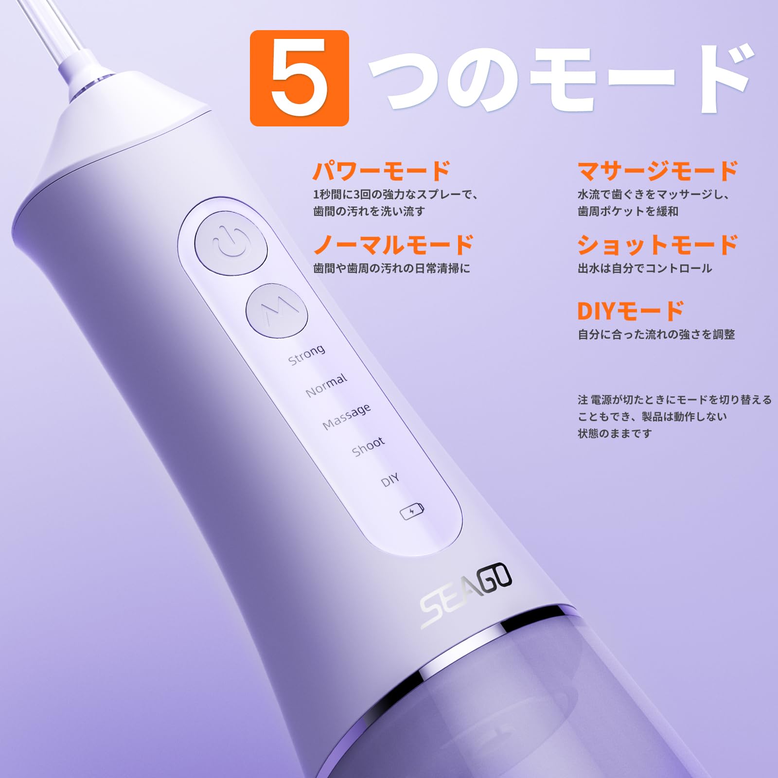 【特価商品】SEAGO 口腔洗浄器 ジェットウォッシャー 替えノズル 7本 ダブルボタン USB充電式 DIYモード 2分間のタイマー 充電リマインダー 口腔ケア IPX7防水 旅行・家庭用 (藤色) | Lumisfera