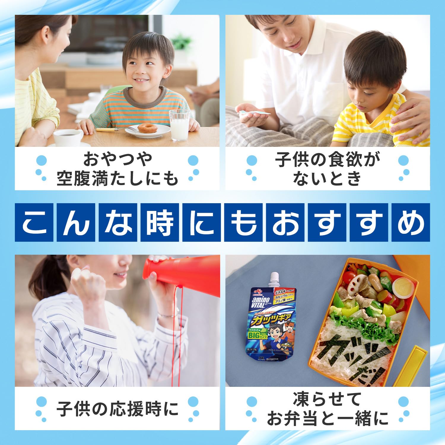 バナナ2本分強のエネルギー(200kcal)に加え、お子様の成長に大切なカルシウム、アミノ酸1500㎎を配合したゼリードリンクです。