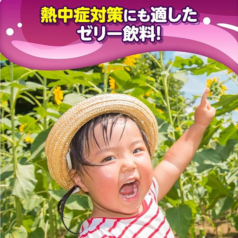 【特徴①成長期のお子さまに必要なカルシウム、ビタミンB1・B2・B6、ぶどう糖、乳酸菌を配合した、ミックスフルーツ風味の美味しいゼリー飲料です。