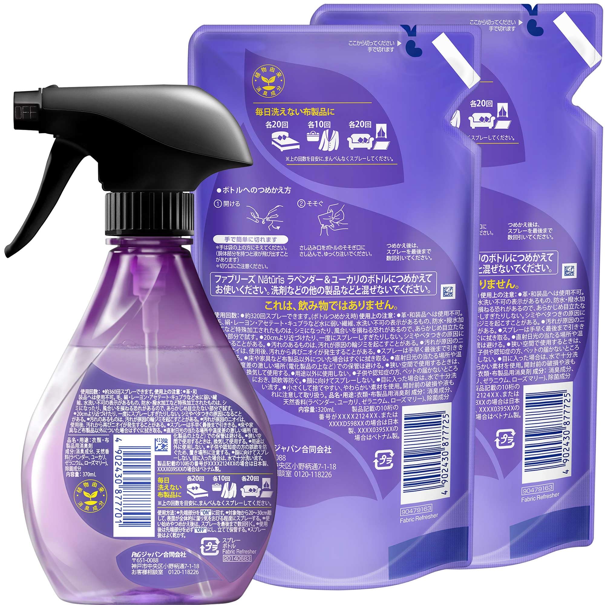 ファブリーズ 【まとめ買い】 ナチュリス 除菌消臭スプレー 布用 ラベンダー&ユーカリ 本体 370mL + 詰め替え 320mL×2個
