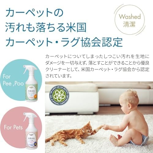 自然界に存在する無害の成分を配合し、安全性に配慮したバイオ消臭剤。 主成分に配合している微生物は、納豆菌や乳酸菌のように安全に管理されたバイオ成分。害のある成分を含んでいないので、人体にも地球環境にも優しく、小さなお子様やペットのいるご家庭も安心してご使用いただけます。 ◎皮膚一次刺激性試験済み ◎急性経口毒性試験済み ◎NSF米国衛生安全機構認可済み ※安全性を高めていますが、人や動物に直接スプレーしないでください。 ※トイレや寝室など、室内空間にはスプレーしないでください。