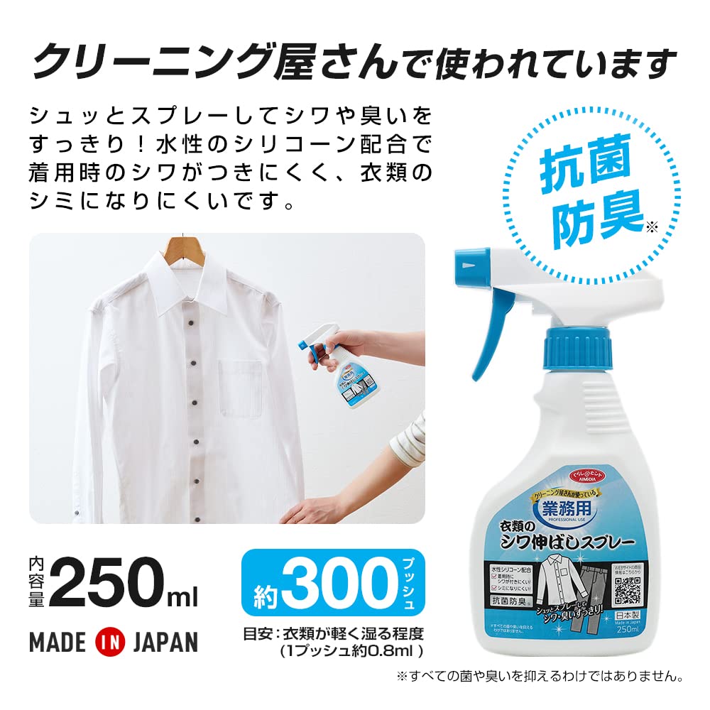 アイメディア(Aimedia) しわ伸ばしスプレー 洗濯洗剤 シワ取り 消臭スプレー 250ml 日本製 無香料 衣類用 ワイシャツ 業務用 抗菌 防臭 衣類のシワ伸ばしスプレー