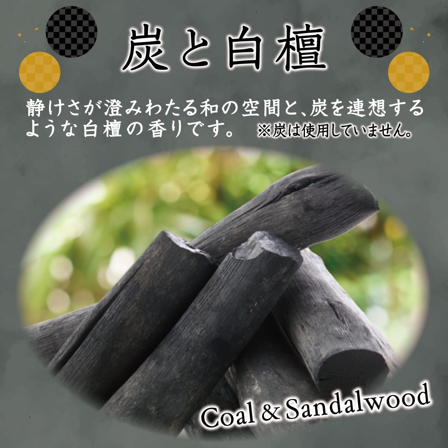 【炭と白檀の香り】すみきった和の空間と炭のイメージを連想させてくれる、上質な白檀の香りです。※炭は使用していません。