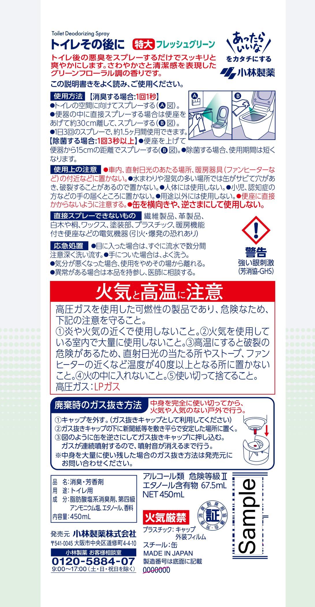 トイレその後に 【まとめ買い】 大容量 450ml フレッシュグリーンの香り×4個 消臭芳香剤 トイレ用 消臭スプレー メガネクリーナおまけ付 小林製薬