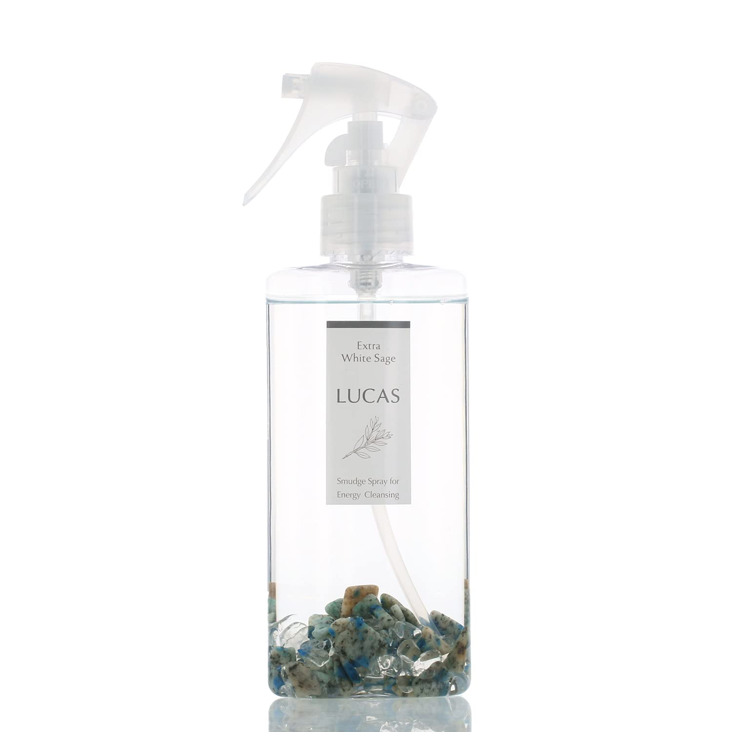 自宅やオフィスで使いやすい「ガンタイプ」の浄化スプレー。 噴霧量が多いので1プッシュで広い空間を浄化することができます。 浄化だけではなく、ソファやベッドなどの消臭・除菌・香り付けにもおすすめです。 LUCAS(ルカス)は自然界の浄化成分であるホワイトセージから抽出したエッセンシャルオイルを配合した、天然石がキラキラ輝く、浄化・リフレッシュ用スプレーです。 人工香料や保存料は一切使用せず、天然成分100%で安心してご使用いただけます。 石の種類によって香りも違うので、お好みでお使いください。