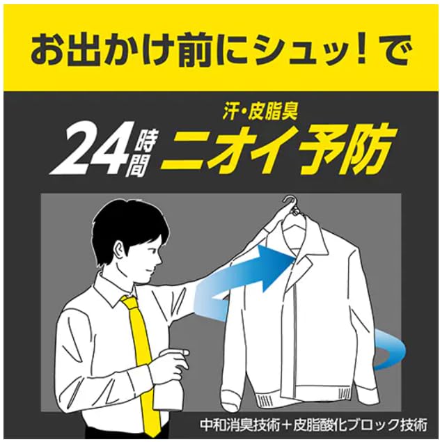 ◆男のニオイ撃破! 体臭・タバコ・焼肉などのニオイを瞬間消臭、さらに汗臭バリア効果でくり返し汗をかいてもニオわせません。(中和消臭による予防効果)