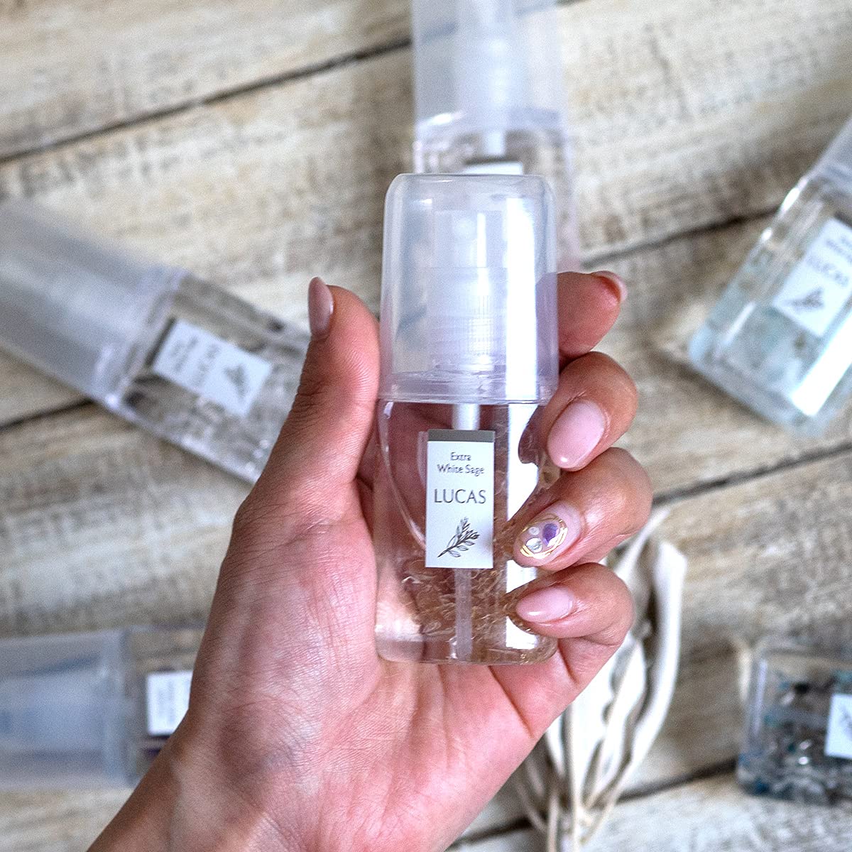【使い方】「浄化スプレー LUCAS」本体に注いでご使用ください。 ○ お部屋などの空間を浄化する法方 空中に向けて強めにプッシュしてください。 使用頻度やプッシュの回数はお好みでご調整ください。 ○ソファやカーテン、服を浄化する法方 全体に吹きかけるようにしプッシュし浄化、香り付けしてください。 (事前に目立たない場所で試してからご使用ください) ○ 天然石やアクセサリーを浄化する法方 アクセサリー・天然石に直接スプレー後、布などで軽くふいてください。とても綺麗に輝きます。